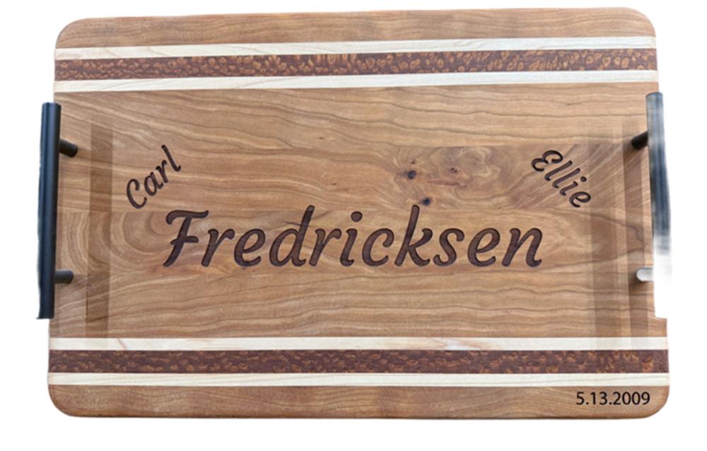 Our Large Tray is very popular for wedding gifts. It measures approximately 21” Long, 12” Wide and 13/16 Thick. All trays come with care instructions and handles.